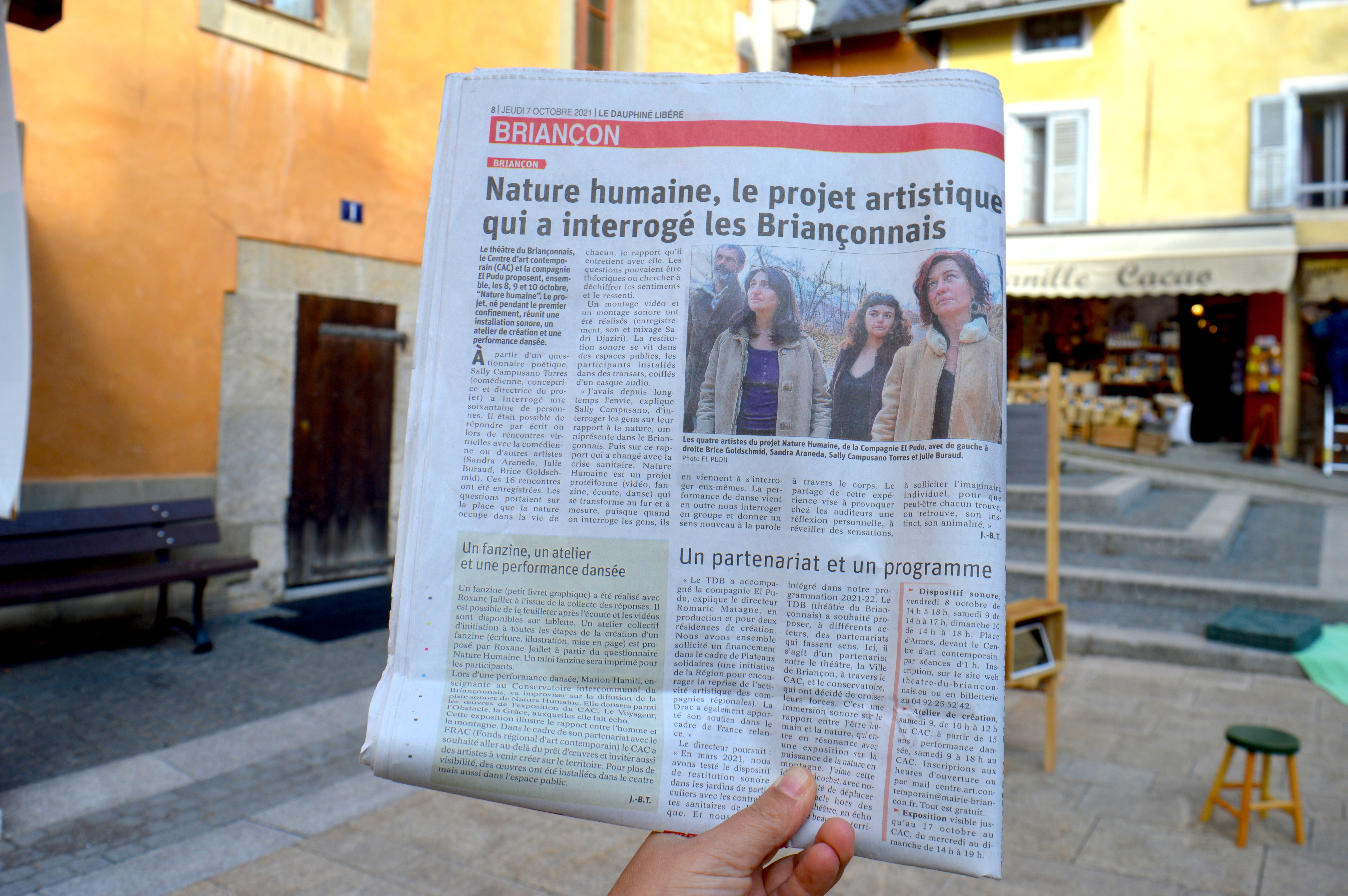 L’ombre d’un arbre feuillu, le sommet d’une montagne, le sable d’une plage ou encore un écran d’ordinateur (seulement si les circonstances l’imposent !) peuvent devenir le lieu idéal pour une rencontre intime entre les comédiens-sondeurs de Nature Humaine et le public.