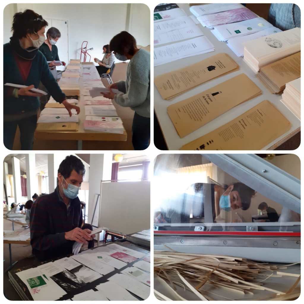 Ecriture au pinceau, illustration à la pointe sèche, impression à l’aide d’une presse sur du beau papier sont au rendez-vous pour permettre de fabriquer un petit livre collectif.