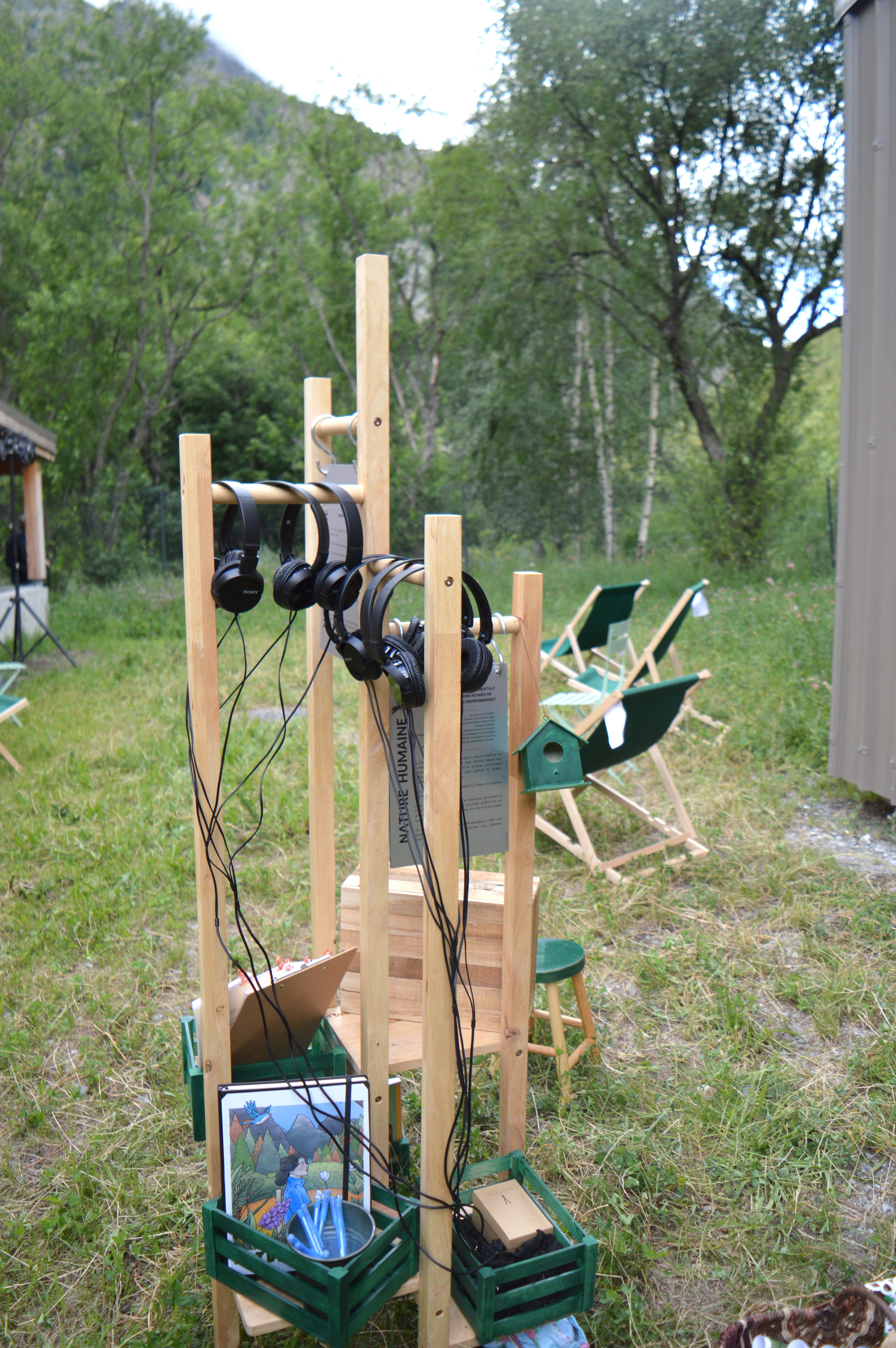 … l’écoute d’un montage sonore / à l’image d’un collage, il mélange des voix enregistrées lors de l’enquête et des sons de nature.
